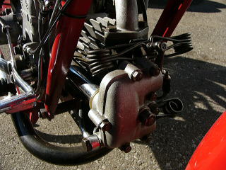 エンジンは2バルブI.O.E(インレット・オーバー・エキゾースト)、これは排気バルブが、プッシュロッドとロッカーアームによってヘアピンスプリングを介し制御されるOHV機構。直径280mmの鍛造フライホイールは、外付けされている。