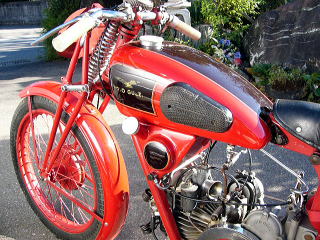 モトグッチのファクトリーレーサー”C4V”はこれまでイギリス勢に上位独占されていた表彰台を、1位、2位を独占、5位入賞という快挙を成し遂げたのである、これによりイタリアオートバイ産業のすばらしい発展が立証される結果となった。